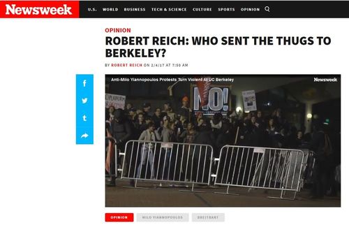 ROBERT REICH: WHO SENT THE THUGS TO BERKELEY?Actual video of Professor Reich connecting the dots:BY ROBERT REICH ON 2/4/17 AT 7:50 AM