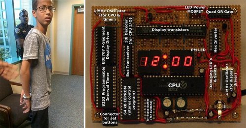 Again, from CNN: “”I built a clock to impress my teacher but when I showed it to her, she thought it was a threat to her,” Ahmed told reporters Wednesday.” It was really sad that she took the wrong impression of it.””