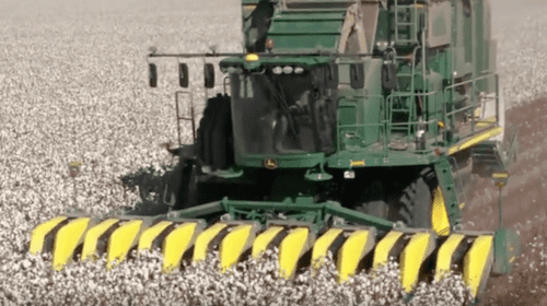 The importance of the machine’s efficiency, particularly cutting the expense of workers, stands out in the company video below. The voice-over says, “Perhaps best of all is the decrease in your labor costs.” Cotton farmer Mike Henson of Ropesville, Texas, remarked positively, “The biggest thing about it was a one-man operation doing what nine or ten other people usually do.”