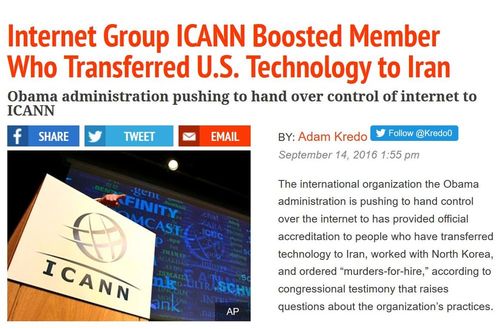 The actual mechanism by which this could work is incredibly complex—just listen to the panel of experts assembled by the Heritage Foundation. But basically, there is an organization called the Internet Corporation for Assigned Names and Numbers (ICANN) which controls the domain name system. [Internet Group ICANN Boosted Member Who Transferred U.S. Technology to Iran | Obama administration pushing to hand over control of internet to ICANN, ByAdam Kredo, Washington Free Beacon, September 14, 2016]