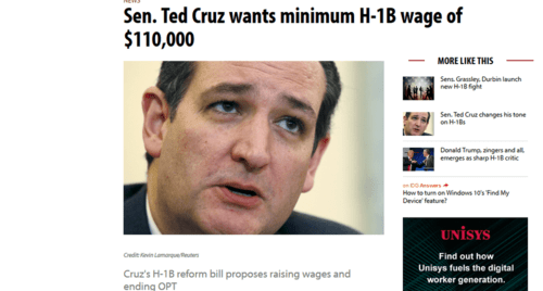 I welcome the Cruz/Sessions bill. However, I would remind folks that $110K/year is not a particularly high salary for workers who may have invested hundreds of thousands of dollars in their education (with the student loans to prove it) and are living in areas like New York City or Silicon Valley with rather high living costs.