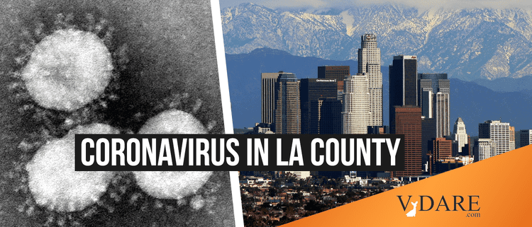 At the bottom of the list are a bunch of dumpy Latino neighborhoods, with the exception of the high-brow college town of Claremont. I didn’t include neighborhoods with no cases listed. The largest was East L.A., which is Mexican.