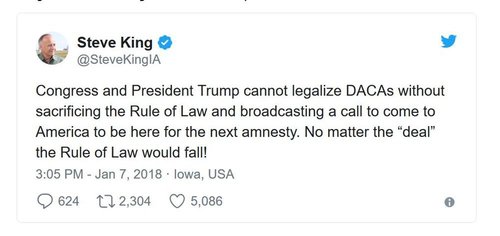Finally, destroying the Founders’ unique creation by erasing the rule of law just to hand out amnesty candy is wrong. As Congressman Steve King tweeted on Sunday: