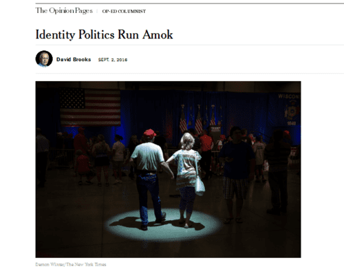 Identity Politics Run AmokDavid Brooks SEPT. 2, 2016