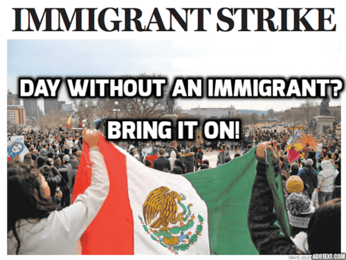 Plus, the current derangement has been augmented by social media. Both sides were heard on a furious Twitter exchange on both sides using the hashtag #DayWithoutImmigrants” — it’s still pretty active, last time I looked: #DayWithoutImmigrants