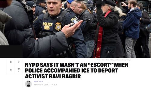 [NYPD Says It Wasn’t An “Escort” When Police Accompanied Ice To Deport Activist Ravi Ragbir, by Nick Pinto, The Intercept, February 8, 2018]And instead of responding to the threats with ruthless coercion, someone in ICE immediately surrendered to the radical leftists and Democrats opposed to the Trump Administration policy of deporting criminal aliens.