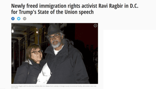 Ragbir and his wife, Amy Gottlieb, traveled to Washington after Rep. Nydia Velazquez (D-N.Y.) offered Gottlieb an invite to Trump’s address.
