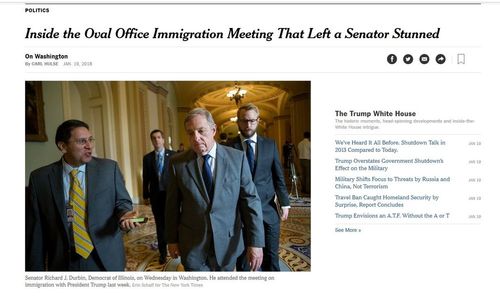 In recounting events, Mr. Durbin, the No. 2 Senate Democrat, who has been pushing to protect young immigrants for nearly two decades, noted that he had a promising telephone call with Mr. Trump hours before last week’s meeting. Then he was invited to join Mr. Graham, Republican of South Carolina and a longtime advocate of an immigration law overhaul, at the White House for what they believed was a session to complete a bipartisan agreement to protect the young immigrants known as Dreamers in exchange for new border security and other immigration law changes.