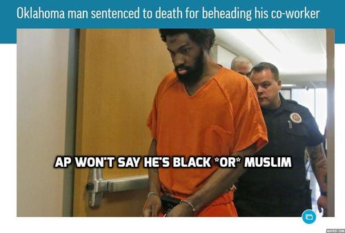 Oklahoma: Black Muslim Convert Beheads CoworkerI found out this morning he'd been sentenced to death, via two tweeters concentrating on the "Muslim" angle:The big Muslim news on Friday was the beheading murder in Oklahoma of a worker in a food processing plant by a recent Muslim convert, Alton Nolen. He attacked a second woman with a knife, but was fortunately stopped by man with a gun, Mark Vaughan, a reserve sheriff’s deputy and the company’s chief operating officer.[More]