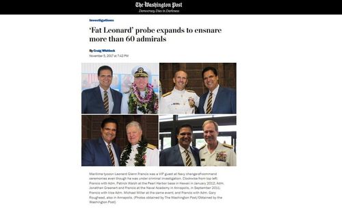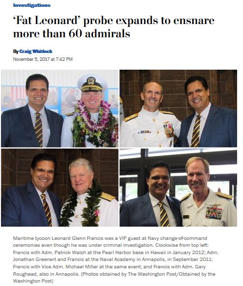 ‘Fat Leonard’ probe expands to ensnare more than 60 admirals, By Craig Whitlock, Washington Post, November 5, 2017