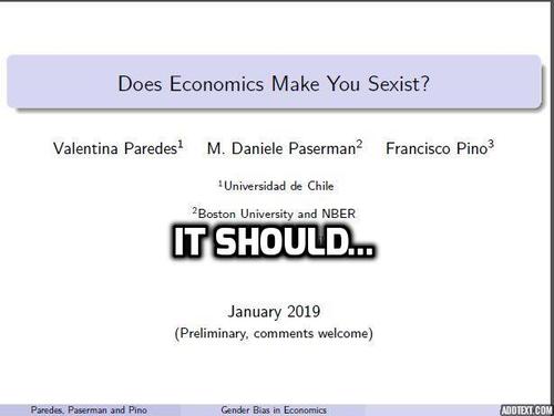 Economics should make you "sexist", because once you study it, you'll realize that when women are found to be earning only 78 percent of what men do, it means they're working 78 per cent as hard (because of different priorities) or only 78 percent as well.