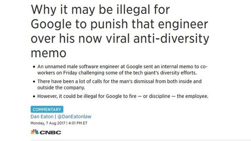 Why it may be illegal for Google to punish that engineer over his now viral anti-diversity memoIt wasn’t exactly a memo, it was an essay posted on an internal company discussion board.
