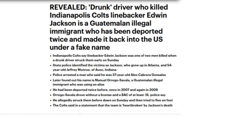 Build the wall!The man accused of killing Indianapolis Colts linebacker Edwin Jackson and another man is a Guatemalan immigrant who was in the country illegally and using an alias, according to police.