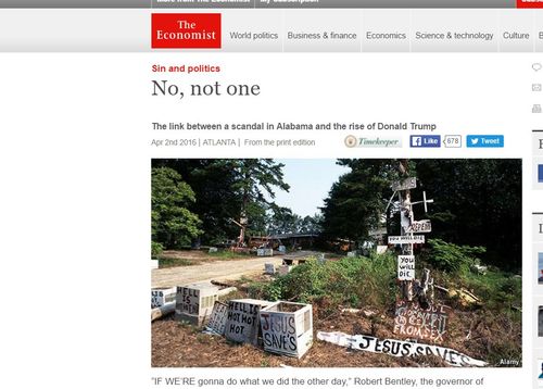 To a startling degree—and for reasons that may shed light on the presidential race—[Alabama] and other southern states combine conspicuous religiosity with widespread loucheness.Linda note: loucheness = sketchy behavior—think Laissez le Bon Temps Rouler.)