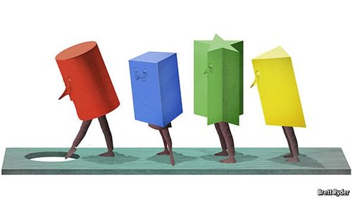 It is true: diversity undermines trust (Schumpeter, February 13th). But this may be its greatest gift. When ethnically different others are present, people tend to remain cautious, scrutinise information and reach better decisions. Our research, published in the Proceedings of the National Academy of Sciences, showed that ethnically diverse markets are significantly less likely to bubble compared with homogenous ones. The results held for North America and South-East Asia, notwithstanding the differences in culture, history and ethnic composition.See? Sure, diversity undermines trust; but that’s a good thing!In homogenous markets, we reason, trust in other people’s reasonableness can cause erroneous beliefs to spread more readily. Diversity makes you better precisely because it makes you less trusting. [Mix it up by Prof. Sheen Levine, The University of Texas, Dallas; The Economist (Letters to the Editor), March 5th 2016.]