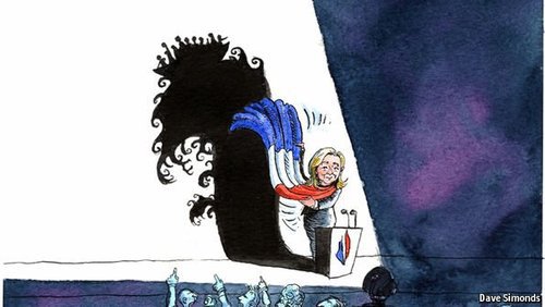 Marine Le Pen may win elections on fear of a non-existent migrant waveThose foolish, fearful French! They're not even getting any migrants.. . . Europe’s greatest refugee influx in modern history has strengthened right-wing anti-immigration parties from Poland to Switzerland. But the biggest European country in which such a party is close to securing a chunk of electoral power is France. Polls now make Ms Le Pen the favourite to win the region of Nord-Pas-de-Calais-Picardie at two-round elections on December 6th and 13th. Home to nearly 6m people, it covers not only Picardy, the city of Lille, and the mining basin to its south, but also the refugee camp at the port of Calais.