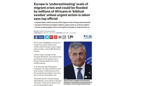 Antonio Tajani said the severity of the migrant crisis is being underestimated