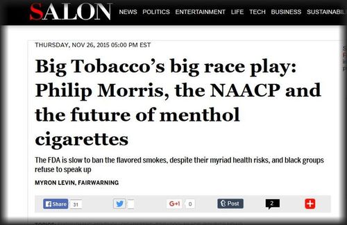 Salon.com, the leftist hysteria website, has noticed that black smokers prefer menthol cigarettes. It bases this conclusion, one presumes, on demographic and other statistical data.[ Big Tobacco’s big race play: Philip Morris, the NAACP and the future of menthol cigarettes | The FDA is slow to ban the flavored smokes, despite their myriad health risks, and black groups refuse to speak up, Myron Levin, November 26, 2015]