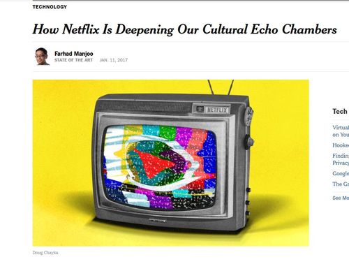 A young immigrant named Farhood Manjoo has taken to The New York Times to instruct us about the sad death of the common culture that television once imposed upon Americans. Now, he says, Netflix and streaming services are balkanizing Americans.[How Netflix Is Deepening Our Cultural Echo Chambers, January 11, 2017]