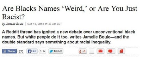 This brings to mind the the late Mike Royko’s “racist” column, when he took black mothers to task for the ridiculous names with which they saddle their children.