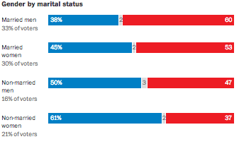 So the marriage gap for men is 12.5 points and for women 16 points.