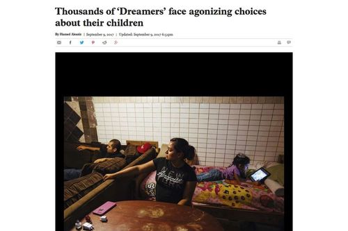 Thousands of ‘Dreamers’ face agonizing choices about their children, San Francisco Chronicle, September 9, 2017Erika Almanza picked up her 11-year-old son from school in San Jose one afternoon shortly after President Trump was elected and began to ask him about his day, but first the boy needed his own questions answered.