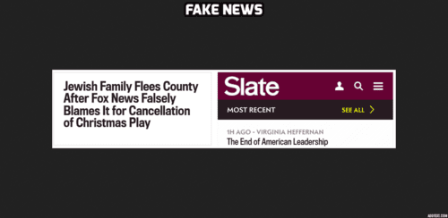 Jewish Family Flees County After Fox News, Breitbart Falsely Blame It for Cancellation of Christmas Play ByDoes that sound plausible? My thought was: I bet instead the family left the country on a planned vacation.by Mark Joseph Stern
