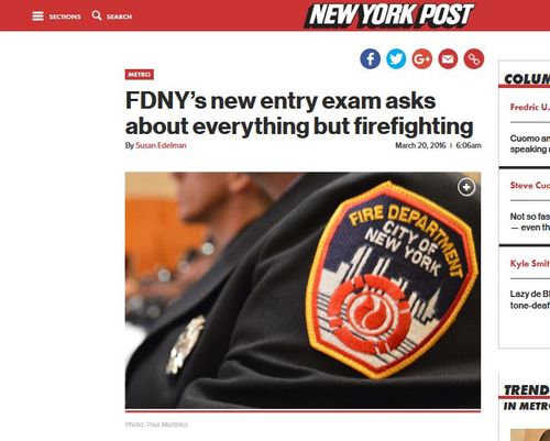 FDNY’s new entry exam asks about everything but firefightingAs I wrote in 2012:By Susan Edelman March 20, 2016 | 6:06am