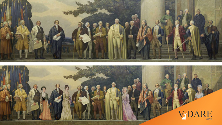 Well, no more of that toxic masculinity! The reproductions you buy at the National Archives Store today show lots of females—around fifteen or twenty percent of the figures portrayed.