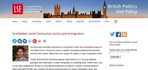 Is tribalism racist? Antiracism norms and immigrationRigging self-government so that perfectly normal policies are considered morally inconceivable has a huge payoff these days.Are ethnically-motivated restrictions on immigration racist? Eric Kaufmann draws on new data from an 18-country survey to explain how people answered this question and how their answer affects their own support for higher or lower immigration levels.