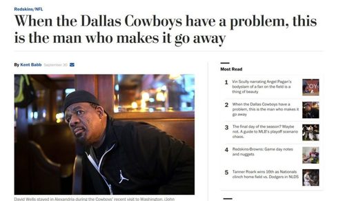 “Whenever something is messed up and you need to go outside the lines a little bit,” former Kaufman County, Tex., district attorney Rick Harrison said, “he’s your guy.”And here’s a Men’s Journal article by Paul Solotaroff about another fixer for the NFL:“A tremendous asset to the franchise,” [Cowboys owner] Jerry Jones said. “. . . I won’t get into detail of the kinds of things [Wells does], because he does everything.” …