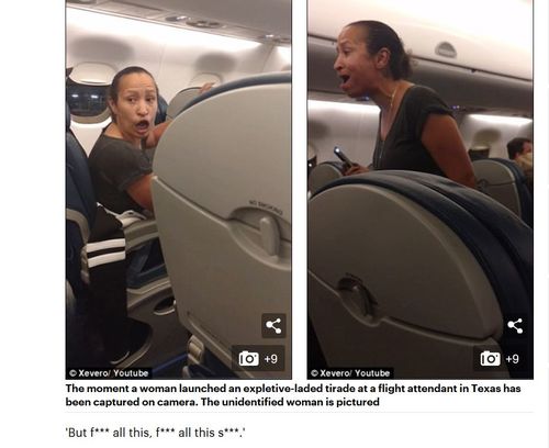 'Get your mother***ing pilot ready because ain't nobody going nowhere': Woman rants at police and flight crew after they tried to escort her off a Texas flight for causing a disturbanceShe even boasted that nobody would be touching her.Daily Mail, April 20, 2017