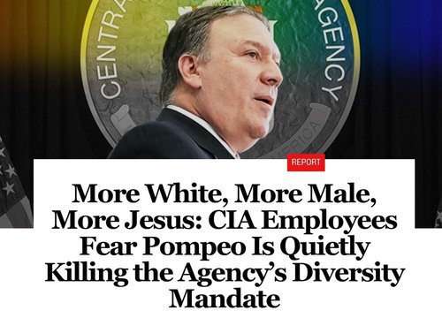 More White, More Male, More Jesus: CIA Employees Fear Pompeo Is Quietly Killing the Agency’s Diversity MandateInfiltrating Wyoming is at the heart of the CIA mission.CIA insiders worry reforms pushed by Brennan are languishing in his absence.