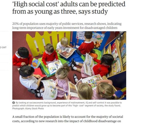 ‘High social cost’ adults can be predicted from as young as three, says study20% of population uses majority of public services, research shows, indicating long-term importance of early years investment for disadvantaged children