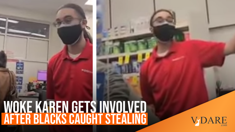 This is an increasingly common view: that blacks are entitled to commit property crimes because calling the police on black shoplifters is tantamount to killing them (because blacks, being entitled to commit property crimes, are also entitled to resist arrest, which usually requires violence on the part of the resistors, which can escalate and Go Bad and wind up with the black criminals dead).