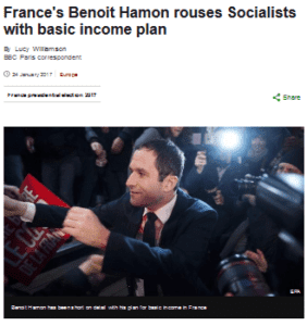 [France's Benoit Hamon rouses Socialists with basic income plan, by Lucy Williamson, BBC, January 24, 2017]