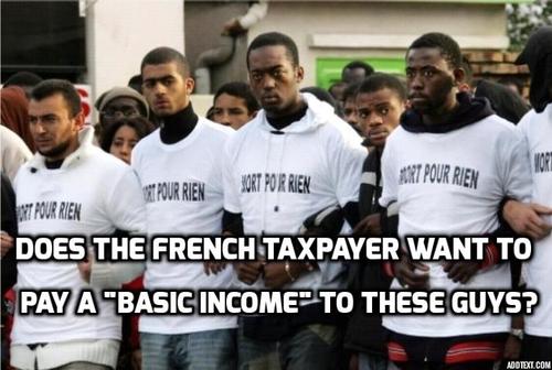 Of course, there's a big problem here. Who is going to pay for it? The French Left is already having a hard time paying for the existing welfare state and keeping businesses when taxes are so high. Are they going to somehow implement this program AND still turn a blind eye to the mass Third World invasion of the Republic? Even implementing such a policy for the actual French would be difficult; subsidizing all of Africa and Arabia will be almost impossible.