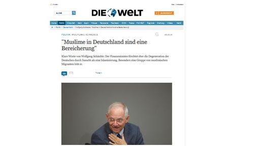 “Muslims in Germany are an asset”Well, maybe not so clear in Google Translate, but clear enough …Clear words from Wolfgang Schäuble: