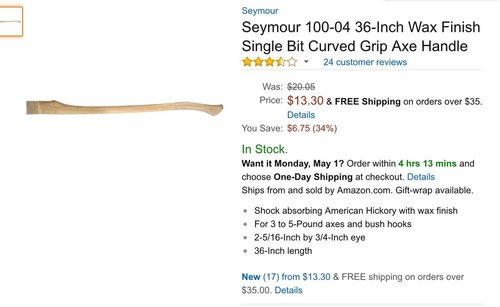 What he's linking to on "these" is the "Seymour 100-04 36-Inch Wax Finish Single Bit Curved Grip Axe Handle" pictured right.BROWNSHIRTS ON PARADE: BREAKING: Protesters Storm Heritage Foundation. “As the protesters were taken out from the lobby, they all chanted in unison ‘We’ll be back.'”
