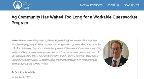 Rep. Bob, Goodlatte, R-Va., is trying to smuggle more foreigners into the United States, this time at the behest of the agribusiness. According to his op-ed in Farm Facts, U.S. agriculture needs foreign workers — guest workers, they are called — because So Goodlatte will give them legislation to open the borders.