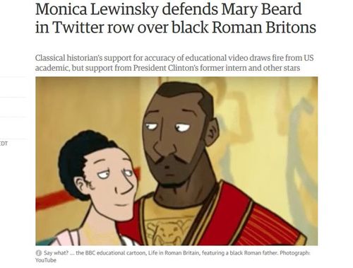 Monica Lewinsky defends Mary Beard in Twitter row over black Roman BritonsClassical historian’s support for accuracy of educational video draws fire from US academic, but support from President Clinton’s former intern and other stars