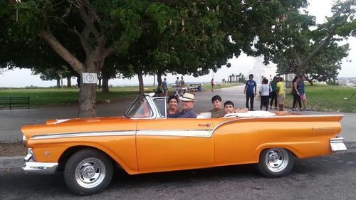 Lilia, Allan, David and Raphael Wall in a ’57 Ford Fairlane Convertible in Havana.