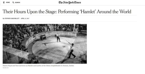 From an NYT review of a book about an English acting troupe that put on Hamlet in 190 countries (pretty much every country except North Korea and Syria) between 2014-2016: