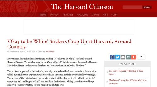 ‘Okay to be White’ Stickers Crop Up at Harvard, Around Country
