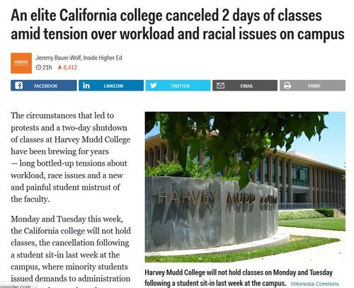 The move is highly unusual. Even as many campuses face tensions on race and other issues, it is rare to shut down for even a day as a result.The full fare for a year at Harvey Mudd is $64,427, so canceling two school days is about equivalent per student to setting fire to $1,000 in mom and dad’s money.
