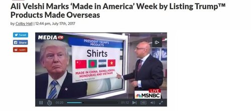 So Ali Velshi, Mediaite reports, is poking fun at President Trump's "Made in America Week" by pointing out Trump products that are made overseas.