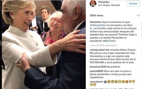 Hillary herself, after the latest debate, received Mexican singer Vicente Fernandez backstage, and thanked him for recording a song calling on Latinos in the U.S. to vote for her in the U.S. election. I wrote a Said in Spanish article which discussed his song.
