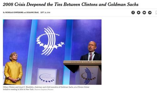 2008 Crisis Deepened the Ties Between Clintons and Goldman Sachs By NICHOLAS CONFESSORE and SUSANNE CRAIG SEPT. 24, 2016