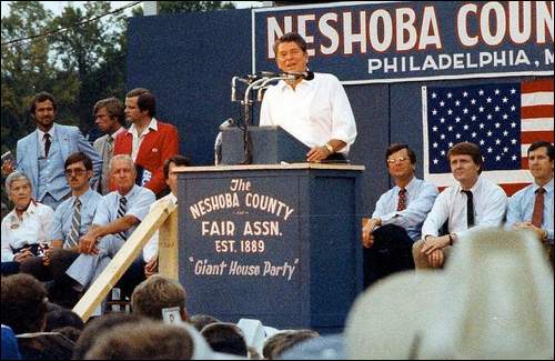 Then there was Ronald Reagan's speech at the Neshoba County Fair in August, 1980. You will hear, over and over again, that Reagan went to Philadelphia, Mississippi, (partly at the behest of then-Congressman Trent Lott, another guy who said something that turned out to be “racist” after liberals and neoconservatives had interpreted it )and spoke about “States Rights” near the site of the murders of three civil rights workers, who had been murdered sixteen years earlier. In so doing, he was supposed to be sending a message to White Supremacists.For a recent example, see Righting Reagan's Wrongs?, By Bob Herbert, NYT, November 13, 2007. For a fairly despicable example, see WALTER FIELDS: No tears for Reagan, BlackAmericaToday.com, June 8, 2004. (Reagan had died on June 5th.) And white liberals, are, if anything, even worse.