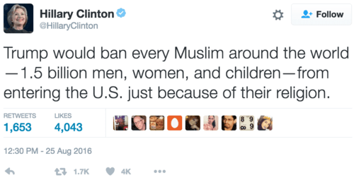 Hillary: Trump Would Ban 1.5 Billion Muslims from Entering the U.S.